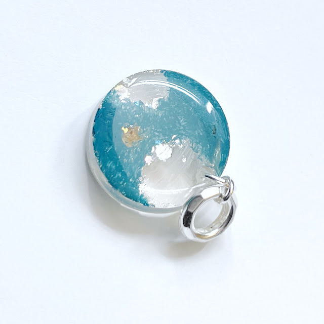 Wisiorek został również pokryty kolejną warstwą z żywicy epoksydowej, co zapewnia nie tylko dodatkową ochronę i trwałość, ale również dodaje mu głębi i połysku. Dzięki temu ozdoba ta jest nie tylko piękna, ale również bardzo wytrzymała.